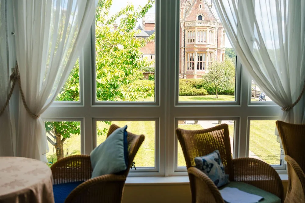 A window with a beautiful view of Holy Cross Priory | Image credit: Holy Cross Care Home